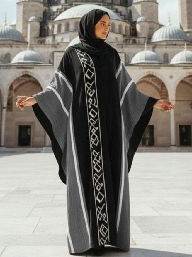 Style: Swimwear Pattern: Geometric Description: Burkini 3 pieces, Abaya, Embroidered Abaya, Pants, Cap Neck: Slightly high collar Sleeve: Long Waist: Regular Fabric Elasticity: Stretchable Fabric Texture: Quick-dry Lycra Washing Instructions: Hand wash, do not use dry clean