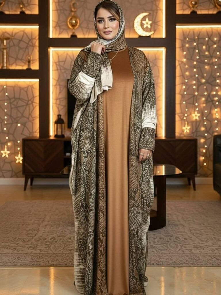 Style: Chic Pattern: Letters Description: Two- pieces Abaya, Bisht decorated with Arabic Letters Print, plain Sleeveless dress Sleeve: Long and Wide Waist: None Length: 150 cm Fabric Elasticity: Non-stretch Fabric Texture: Stain Abaya & Crepe dress
