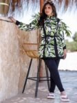 الوصف: طقم سباحة 3 قطع مشجر, جاكيت بسحاب على الصدر و حزام مخفي على الخصر, بنطلون, غطاء رأس