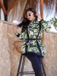 Style: Swimwear Pattern: Foliage Description: 3-piece Burkini set Foliage, long jacket with zipper  and hidden belt, pants, Cap Neck: Slightly high Collar Sleeve: Long Waist: Hidden belt Fabric... read more