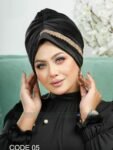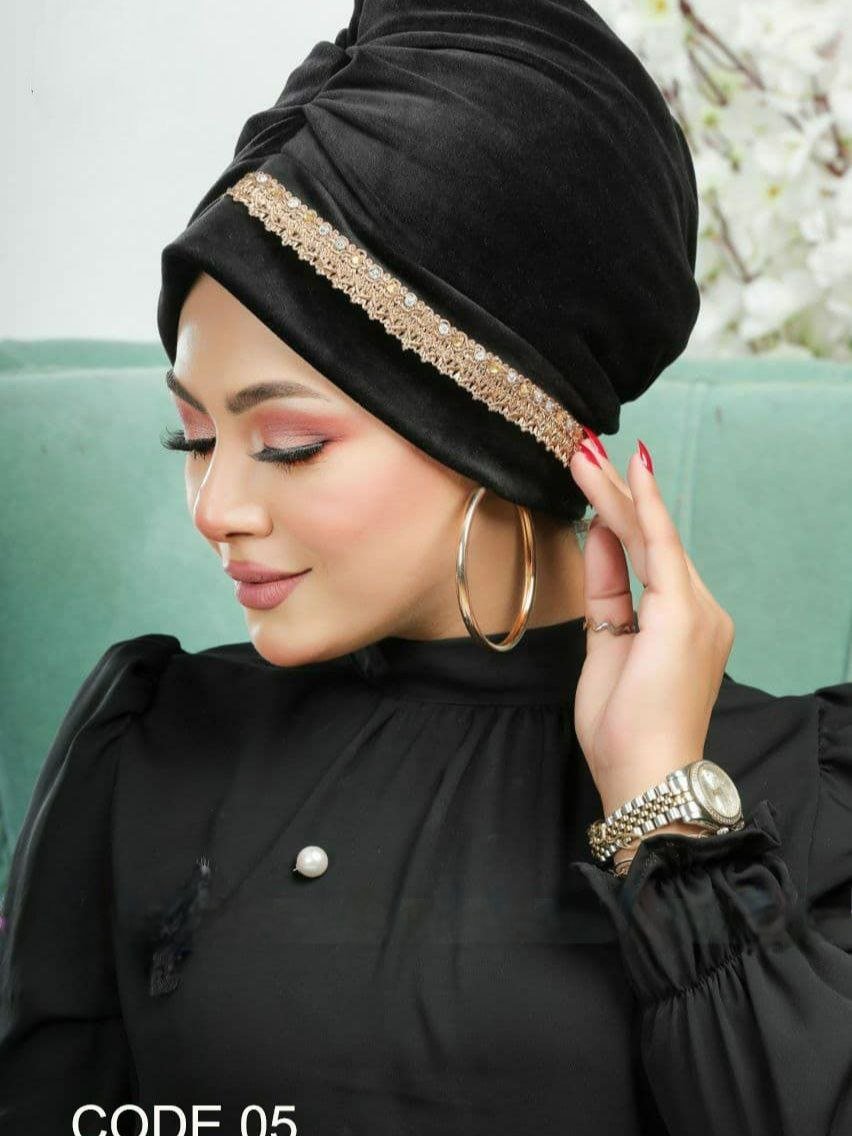 الوصف: حجاب مزين شريط ذهبي