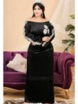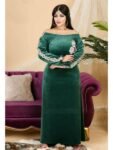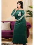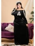 الطراز:بيتى النمط: تطريز الوصف: جلابية مزين تطريز, حزام على الظهر للتحكم بالمقاس العنق: ياقة دائرية الكم: طويل معصم ذو مطاط الخصر: حزام على الظهر الطول:145سم مرونة القماش: متمدد نسيج القماش: مخمل ليكرا