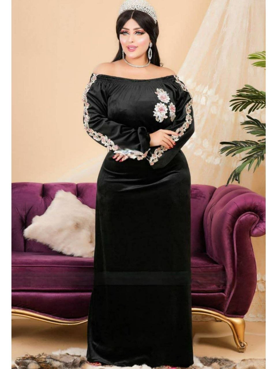 الطراز: بيتى استقبال النمط: تطريز الوصف: جلابية أستقبال مزين تطريز على شكل أزهار على طول الكم والعنق, حزام خارجى للتحكم بالمقاس, ياقه مرتفعه , حجاب مجانا العنق: ياقه مرتفعة الكم: طويل معصم ذو مطاط الخصر: حزام خارجى الطول: 155سم مرونة القماش: متمدد نسيج القماش: مخمل ليكرا
