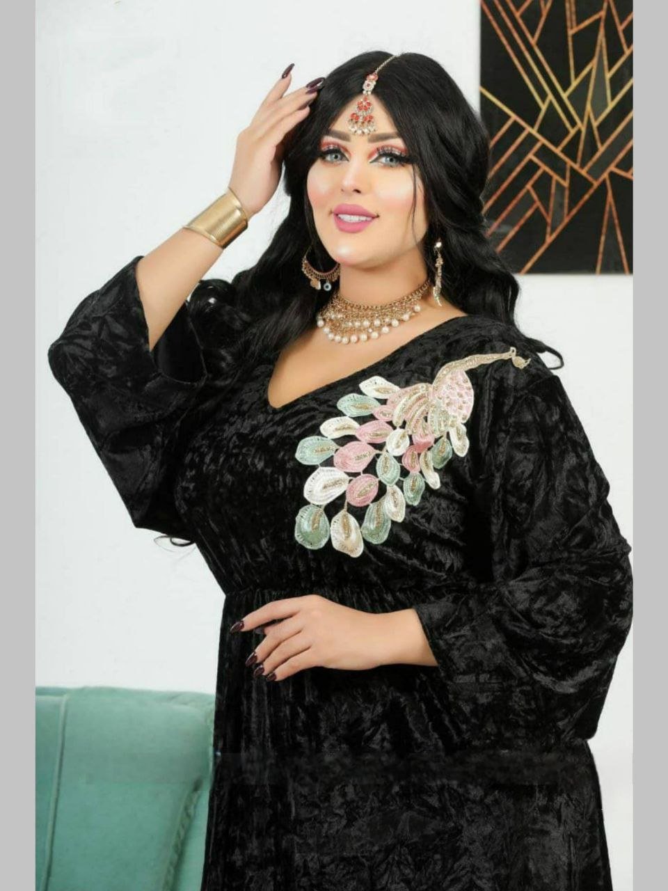 الوصف: جلابية استقبال تطريز على شكل طاووس