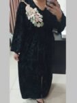 الطراز: شيك النمط: مموج الوصف: فستان قطعتين, فستان سادة كم طويل, جاكيت طويل مزين ورد على الكتف, حزام منفصل العنق: ياقه دائرية الكم: طويل واسع لطول: 145سم