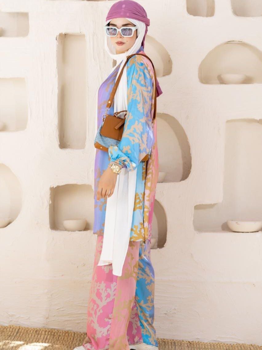 الوصف: طقم, كارديغان طويل مفتوح, بنطلون واسع, جيوب