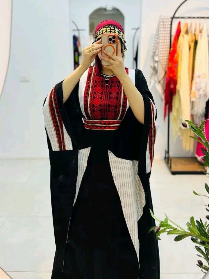 الطراز: 12 مطرزات شرقية النمط: تراثي الوصف: فستان مطرز بخيوط الأيتامين العنق: ياقة V الكم: طويل واسع مع شيفون الخصر: عادي الطول:150سم مرونة القماش: غير متمدد نسيج القماش: كريب