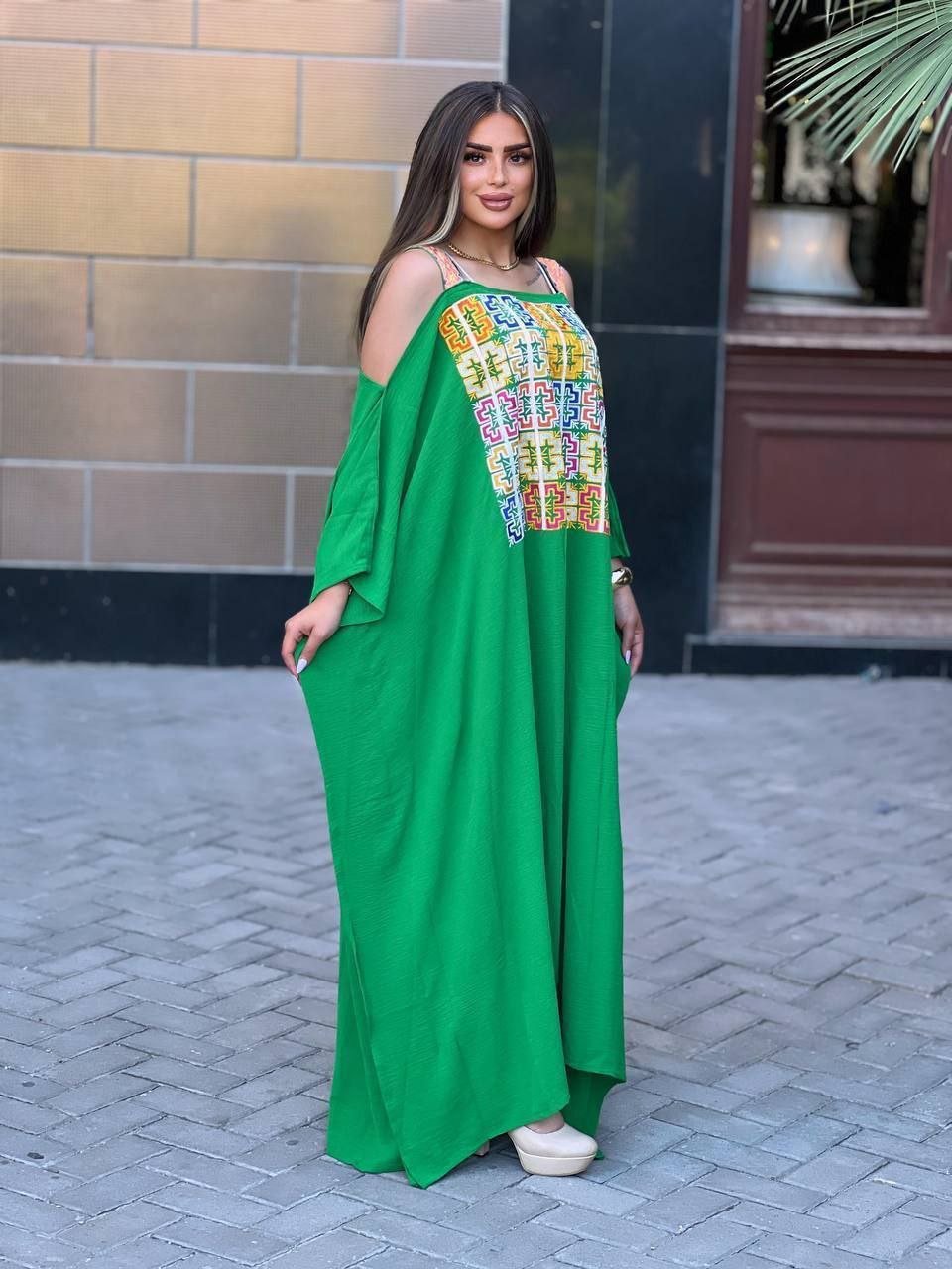 الطراز: بيتي أستقبال النمط: عشوائي الوصف: جلابية عريضة فراشة تطريز خيوط صوف العنق: ياقة دائرية الكم: 1/2 كم واسع الخصر: عريض الطول:146سم مرونة القماش: غير متمدد نسيج القماش: قطن إرشادات الغسيل: في الغسالة بحرارة منخفضة أو التنظيف الجاف