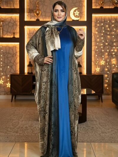 Bisht, Open Abaya, silk, chiffon adorned Hijab, medal print, wide sleeves, casual chic