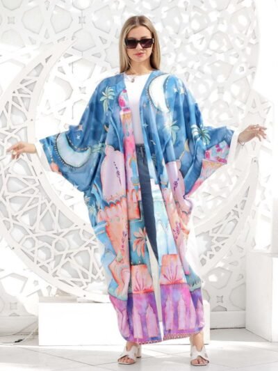 Bisht, Print, Portrait, Crepe, Casual Chic
