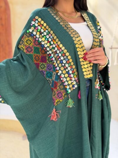 Bisht, Embroidery, Sequins, shiny ribbons, Linen, Casual Chic