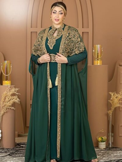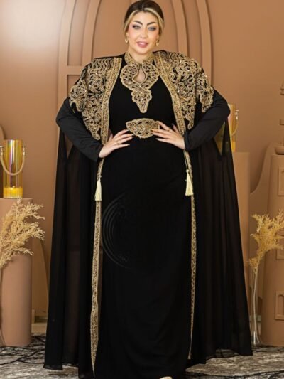 Kaftan, 2 Pieces, Sequins, dress, Serma Embroidery Belt, Chic, Embroidered Cape, Lycra velvet