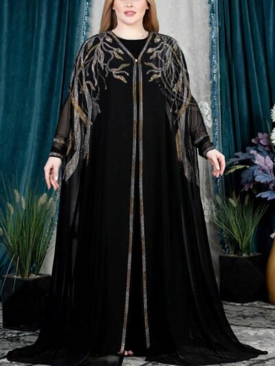 Koftan, embroidered strass, Dress, Foliage, Back Belt, Crepe, Chiffon, Chic