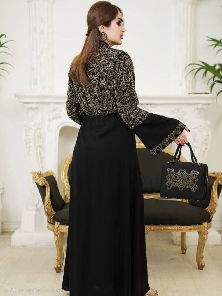 Be the first to review “Abaya, Geometric Strass, zipper, pants, Chiffon Hijab, Separate belt, bag, Silk, Chic”