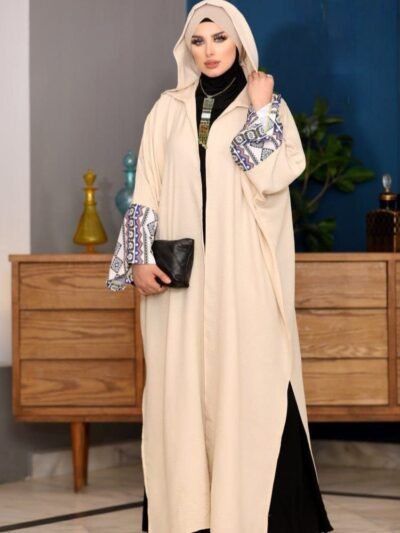 Style: Casual Chic Pattern: Geometric Description: Bisht decorated with Geometric print on the sleeves and back, capuche Neck: Non Sleeve: Long and Wide Waist: None Length: 145 cm Fabric Elasticity: Not Stretchable Fabric Texture: Linen
