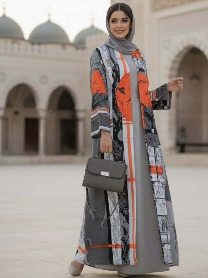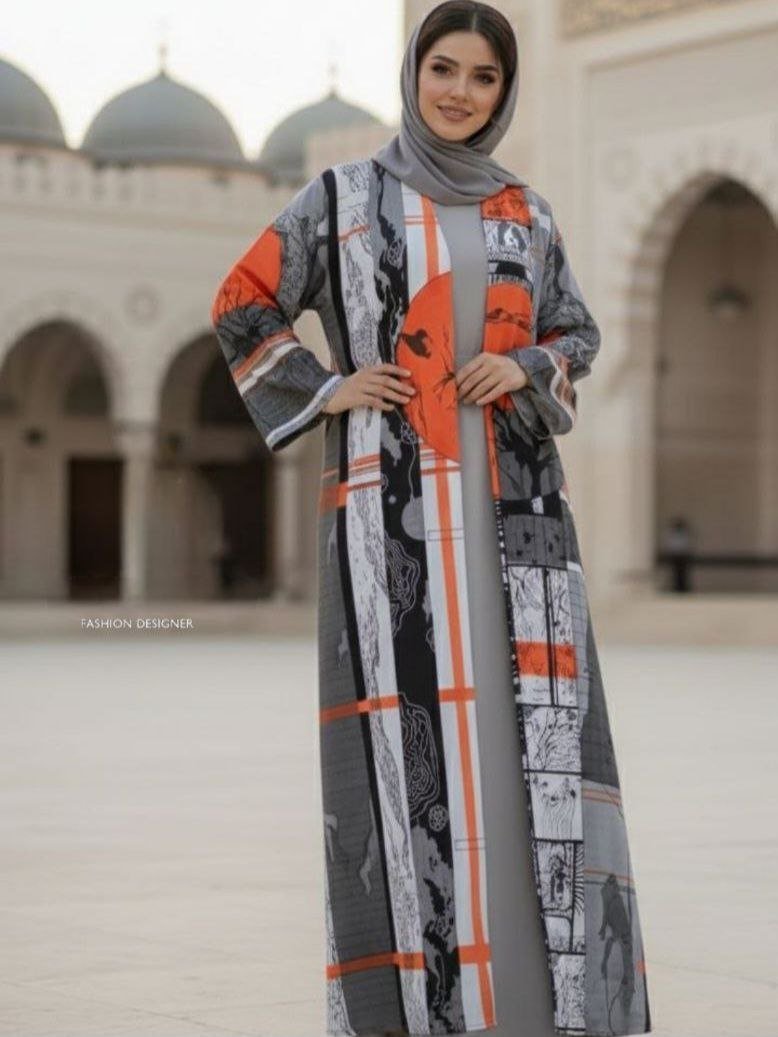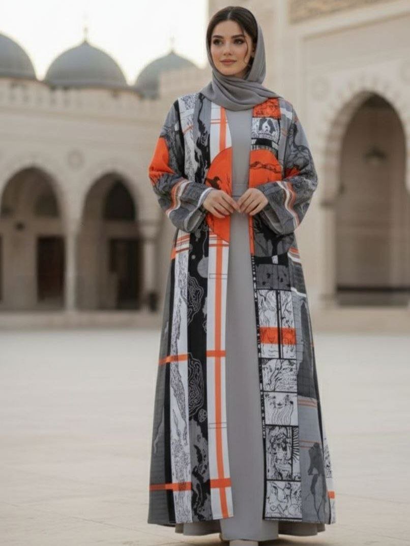 Style: Casual Pattern: Veined Description: Bisht with printed face Sleeve: Long and wide Waist: Regular Length: 152 cm Fabric Elasticity: Non-stretch Fabric Texture: Crepe Washing Instructions: Low-temperature machine wash or dry clean