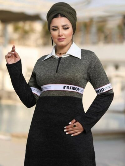 Style: Casual Pattern: Letters Description:Â dress decorated with Letters , Zipper on the chest, Formal collar Neck: Formal collar Sleeve: Long Waist: Regular Fabric Elasticity: Stretchable Fabric Texture: Cashmere wool