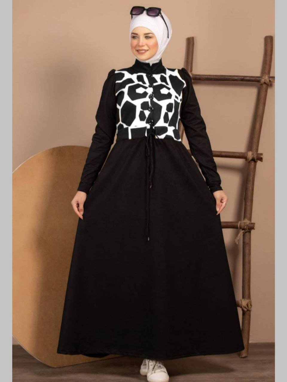 Description:Â dress decorated with Random print, buttons on the chest, pocket, Hidden Belt