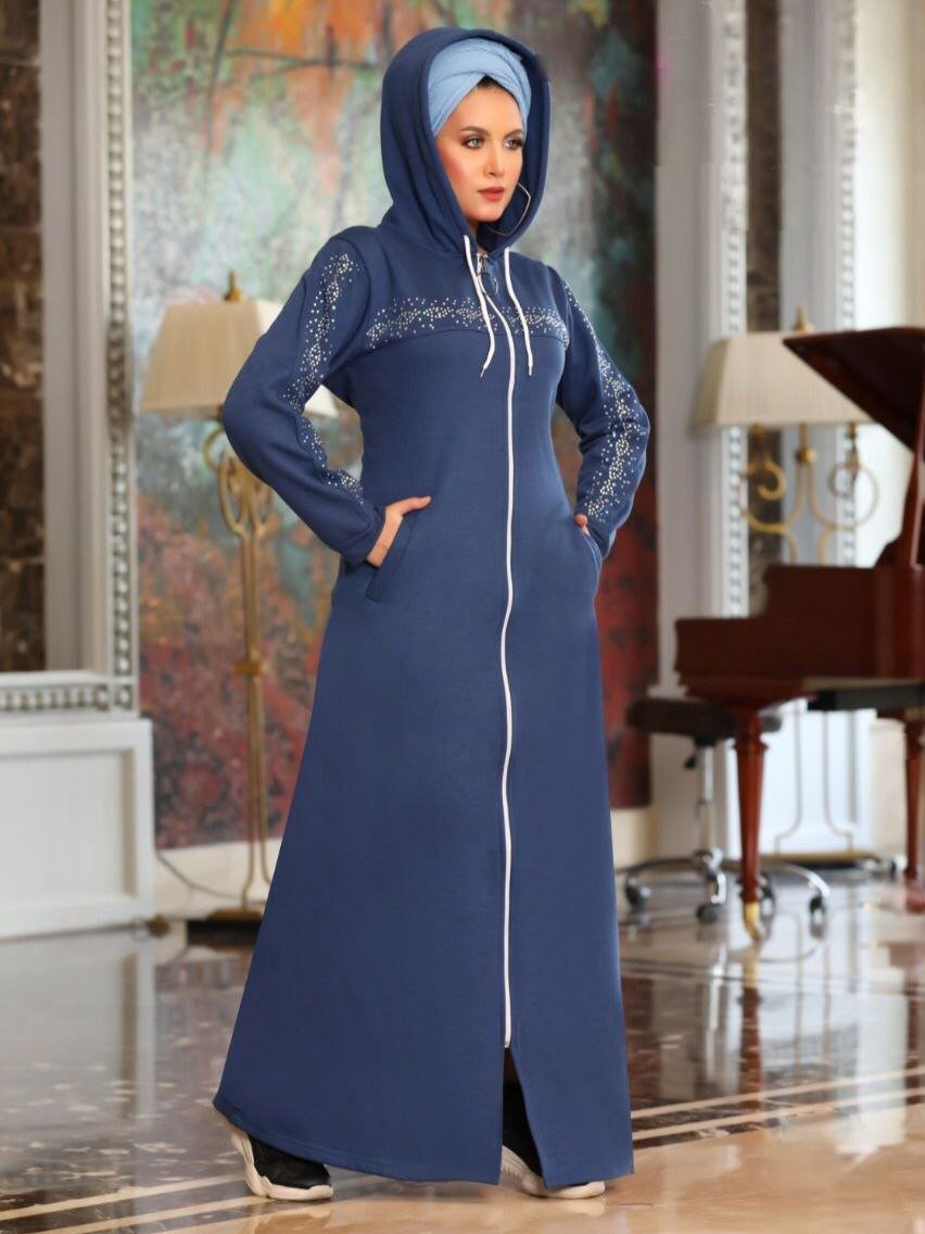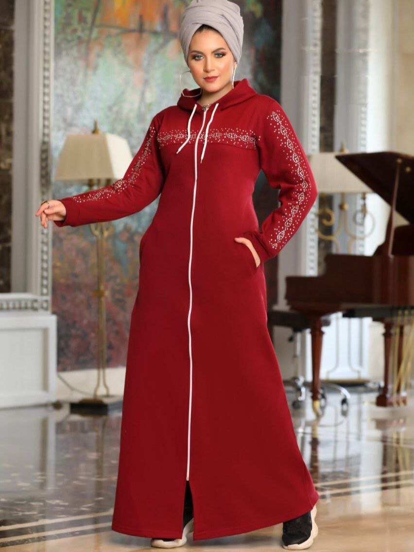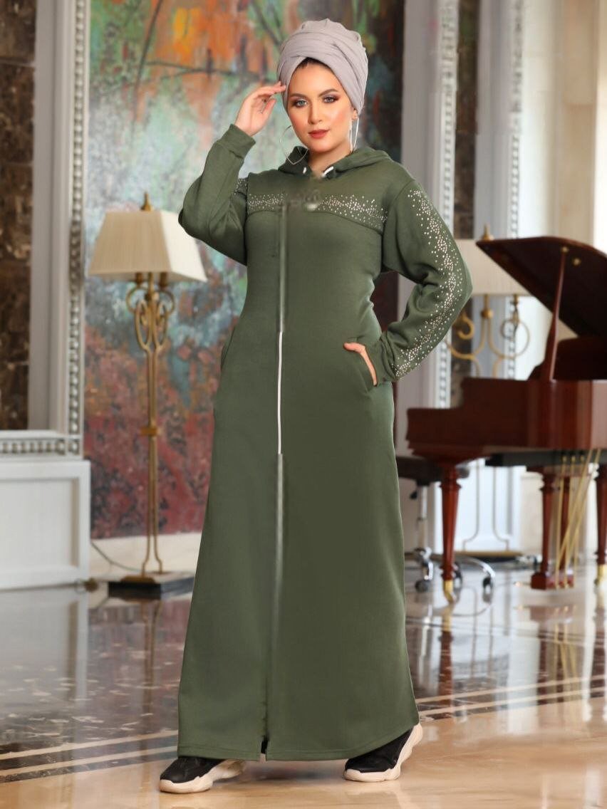 Description: Zipper Dress decorated with Strass on the chest and sleeves, Capuche, pocket