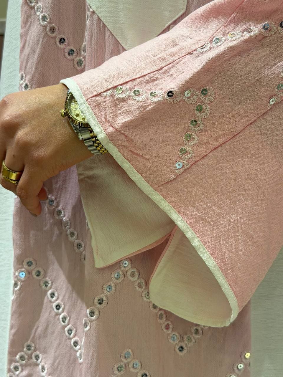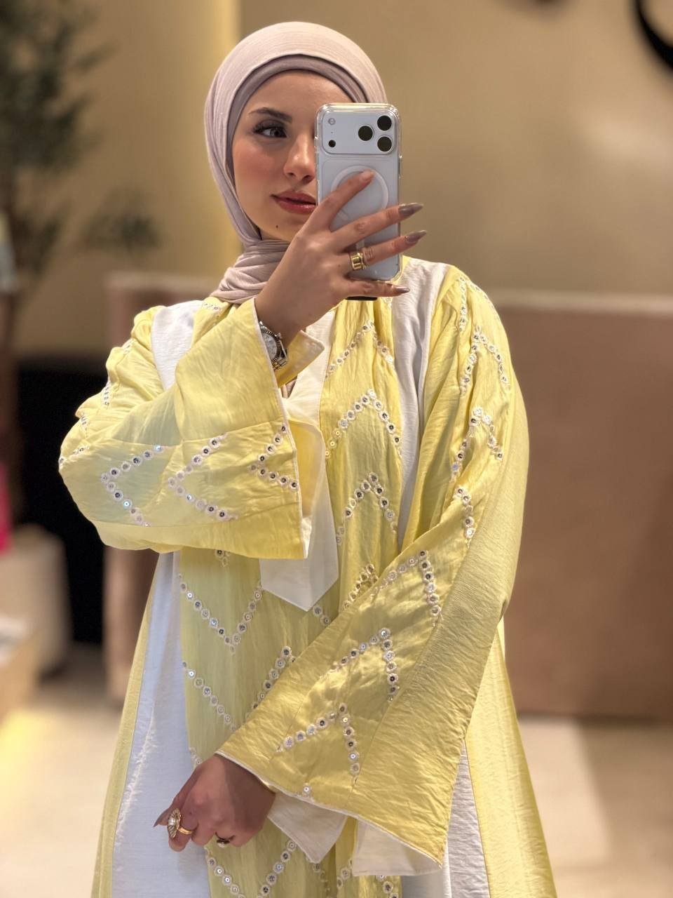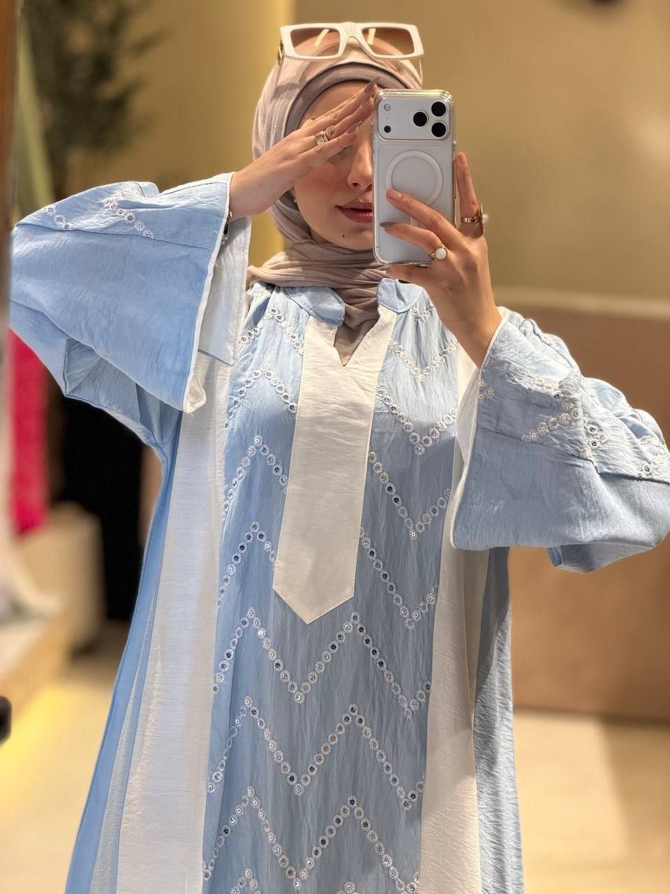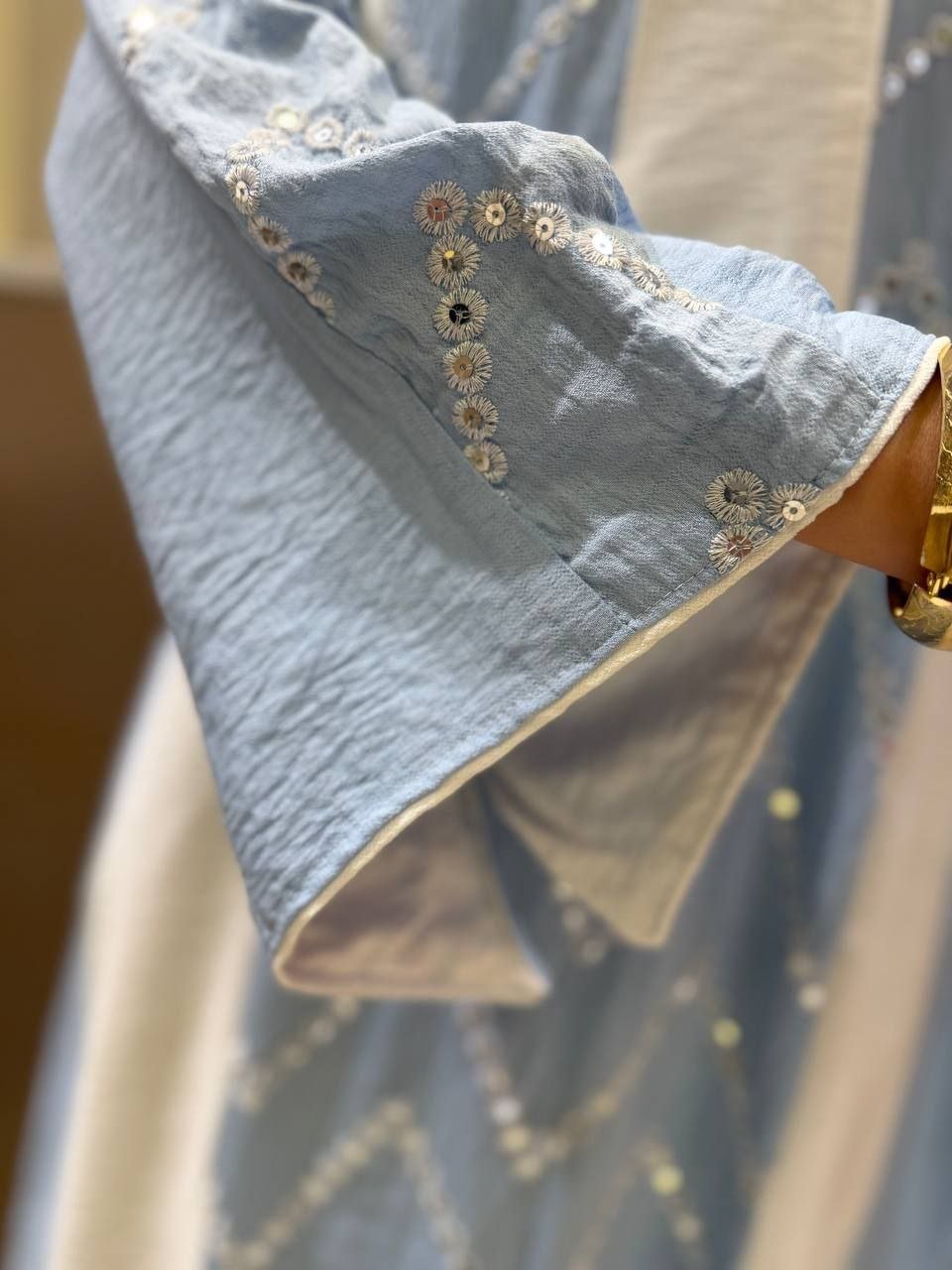 Description: Gradient Jalabiya decorated with silver Sequins along the dress and sleeves