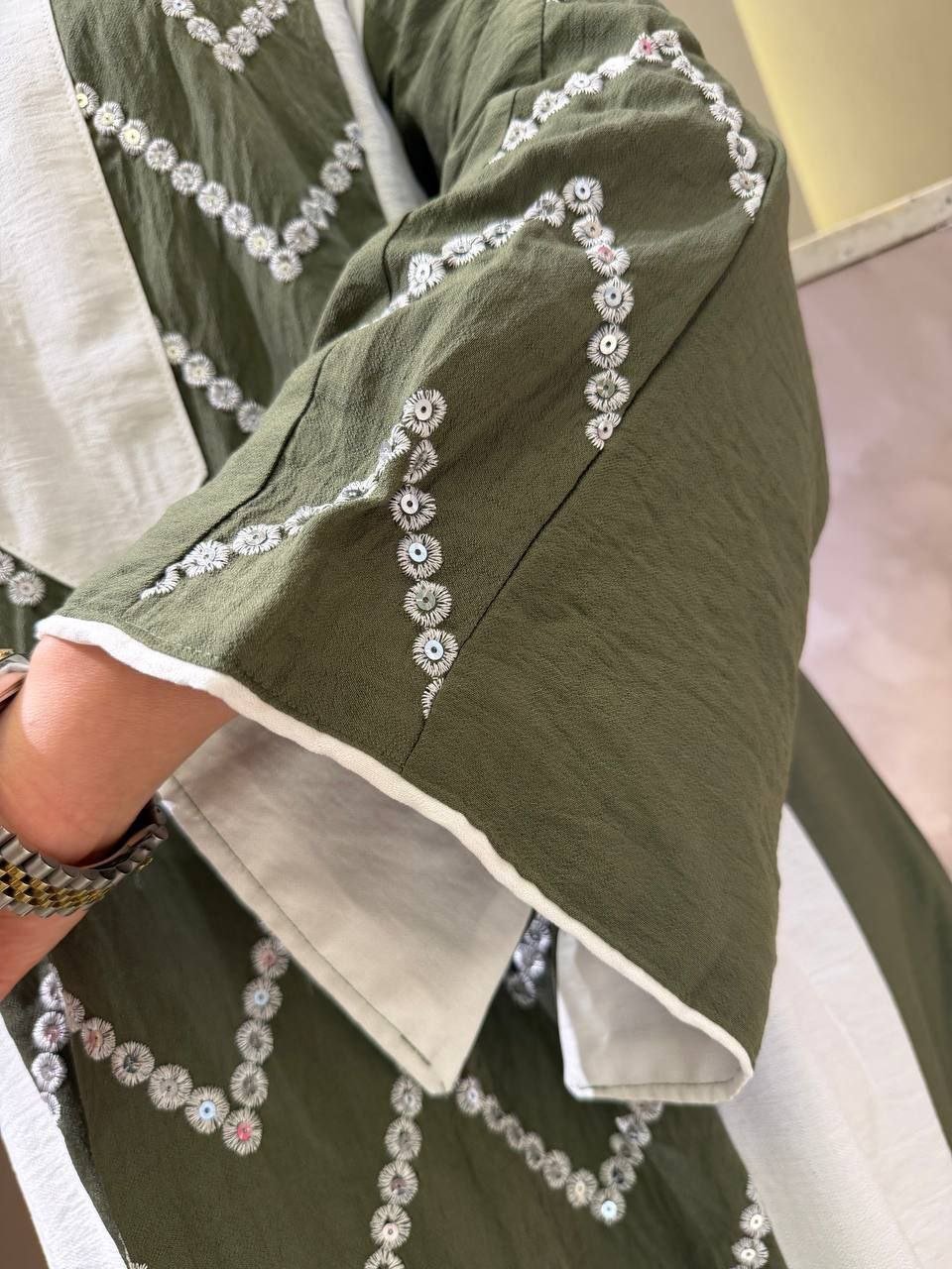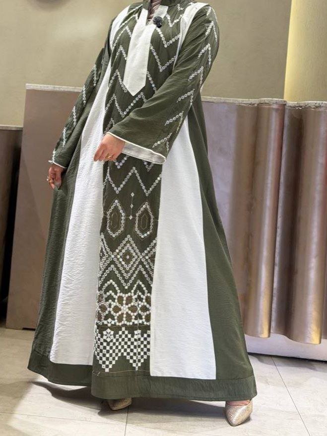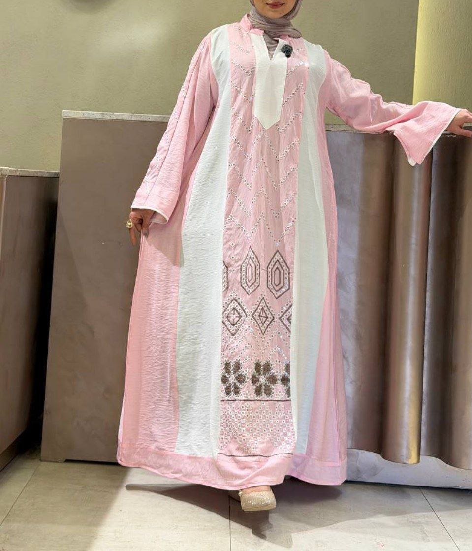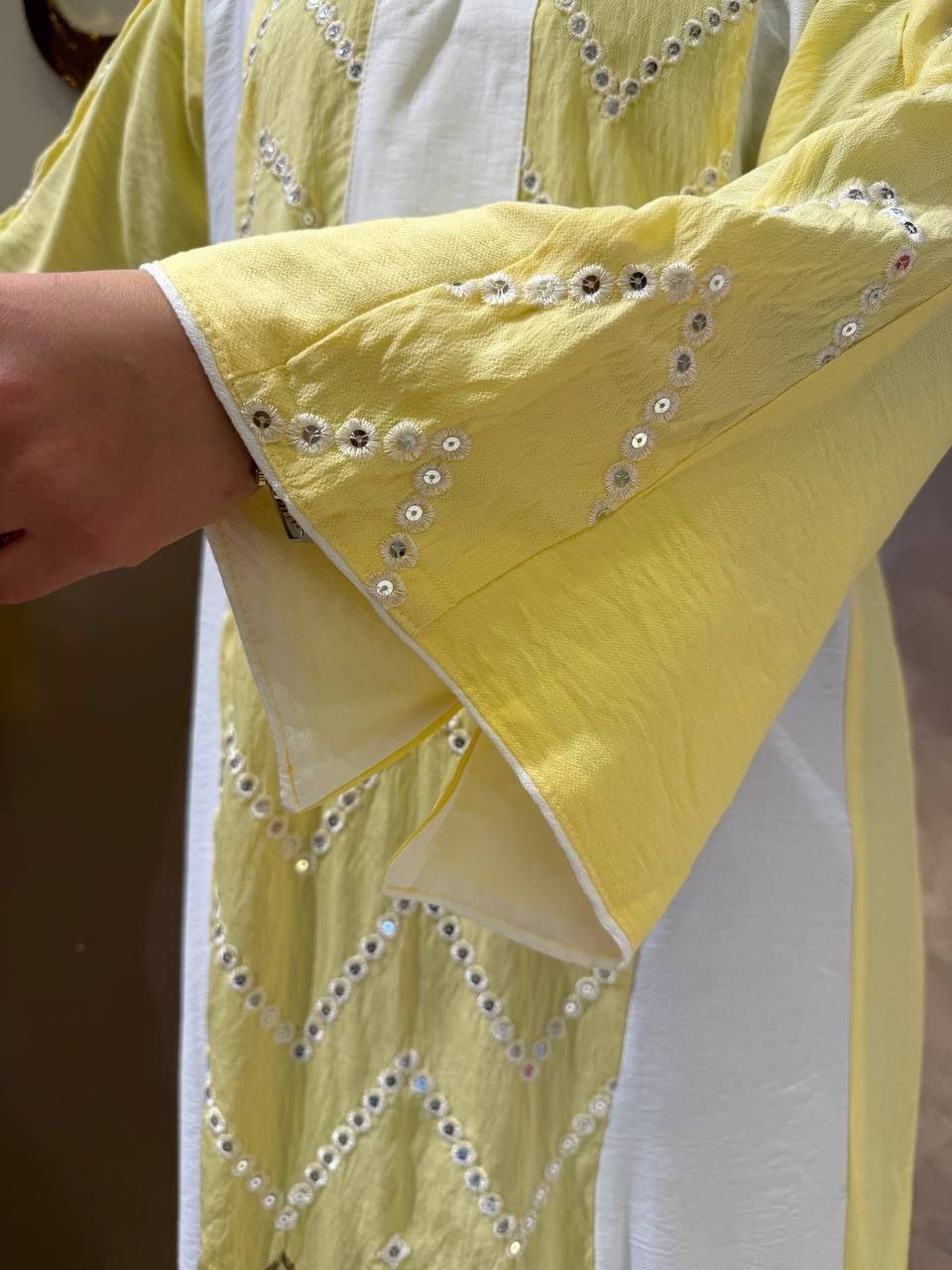 Description: Gradient Jalabiya decorated with silver Sequins along the dress and sleeves
