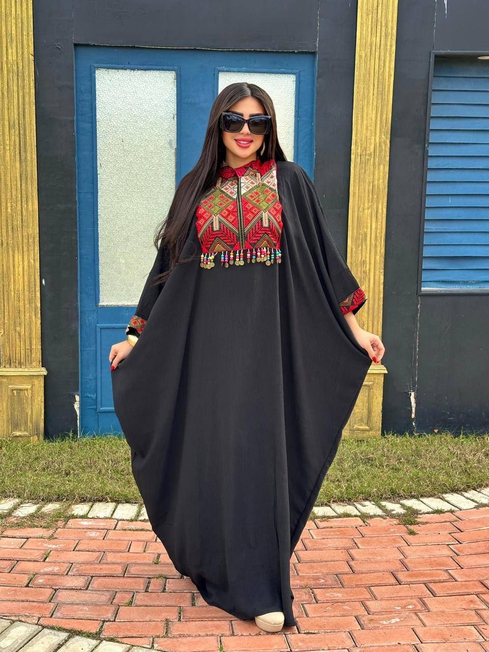 Description: Jalabya decorated with Embroidery Eitamin or lires & Beads on the chest, Butterfly Style