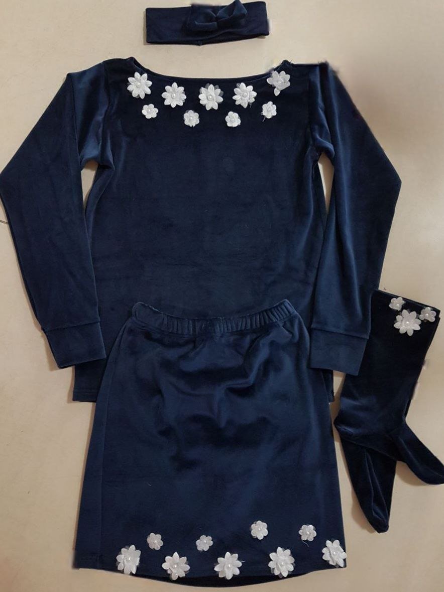 SET 4 pieces, Floral, blouse, skirt, hair tie, footwear, Lycra velvet, Homewear